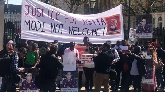 Photo: Geo News screengrabLONDON: Several took to the streets of London and chanted slogans against Indian Prime Minister Narendar Modi as he arrived in United Kingdom for the Commonwealth Heads of Government Meeting (CHOGM).Demonstrations are...from GEO TV - World https://ift.tt/2qGD6RK